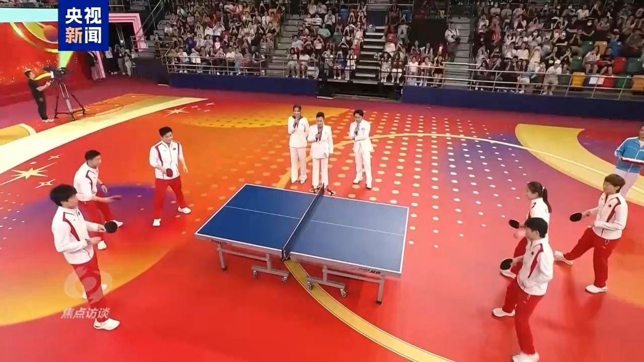 刚刚过去的第33届夏季奥林匹克运动会,中国体育代表团取得了40枚金牌、27枚银牌、24枚铜牌的优异成绩,实现了运动成绩和精神文明双丰收,为祖国和人民赢得了荣誉。在奥运健儿大汇演舞台上,这些奥运赛场上的英雄展现出别样的风采。在巴黎奥运会上中国国家乒乓球队,虽然面临着很多外国年轻选手的强势挑战,最终还是包揽了五个项目的所有金牌,并且首次拿到奥运会的混双金牌,捍卫了“国球”的荣耀。在活动现场,奥运健儿们为观众表演了别开生面的三对三男女乒乓球比拼,让现场气氛非常活跃。