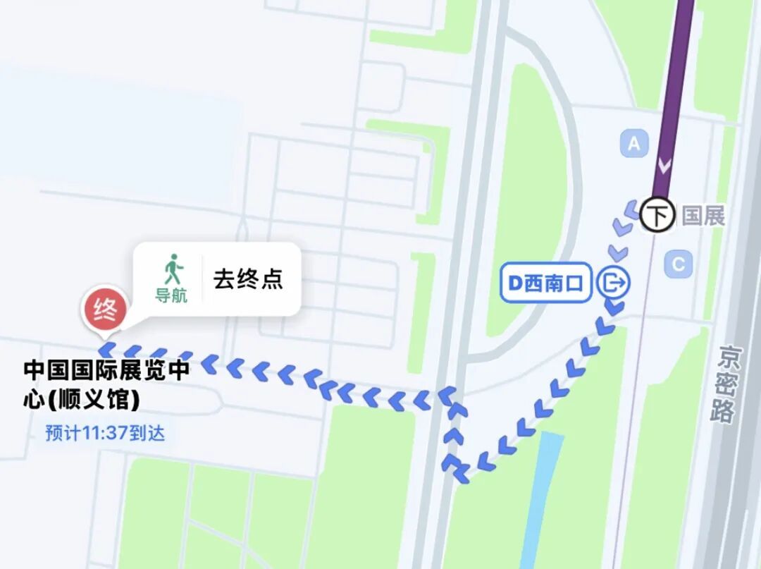 国展站(公交站)下车后步行路线。