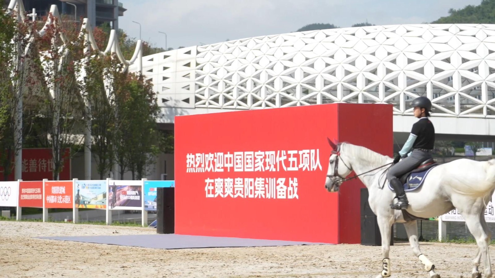 中国国家现代五项队备战巴黎奥运会集训欢迎仪式2日在贵阳国际马术运动中心举行。