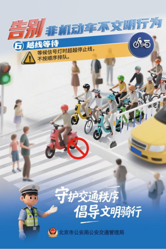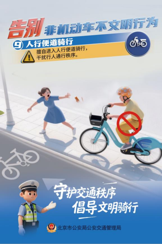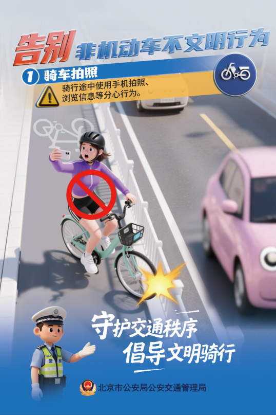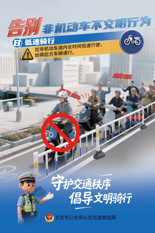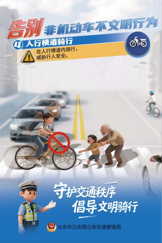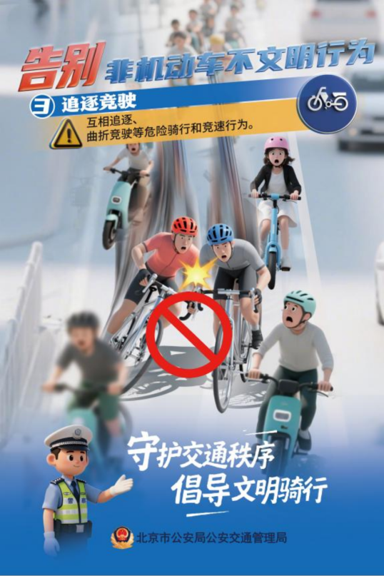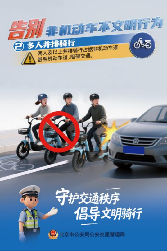 文明骑行,从我做起。希望广大市民自觉遵守交通法规,告别非机动车不文明骑行行为,共同维护道路通行秩序。