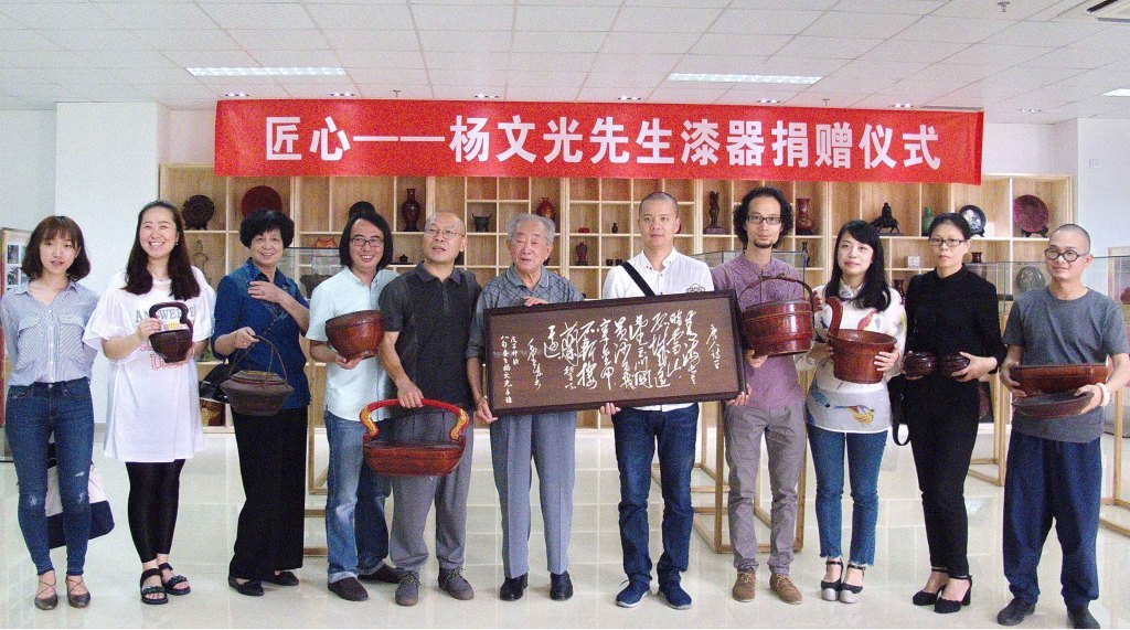 杨文光在浙江省温州大学瓯江学院参加捐献漆器活动。