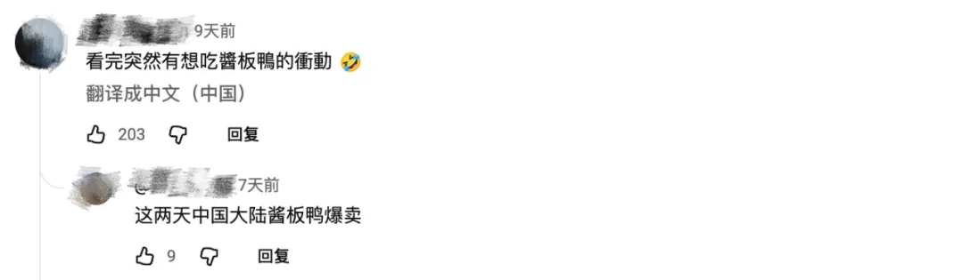 “网路温度计DailyView”数据显示,近一个月“酱板鸭”相关讨论量接近上万。有人留言:“看完想吃酱板鸭是正常的吗?”社交平台上甚至出现求购帖:“请问台北有卖酱板鸭吗?家人没吃过想尝尝,希望知道的人分享店家地址。”