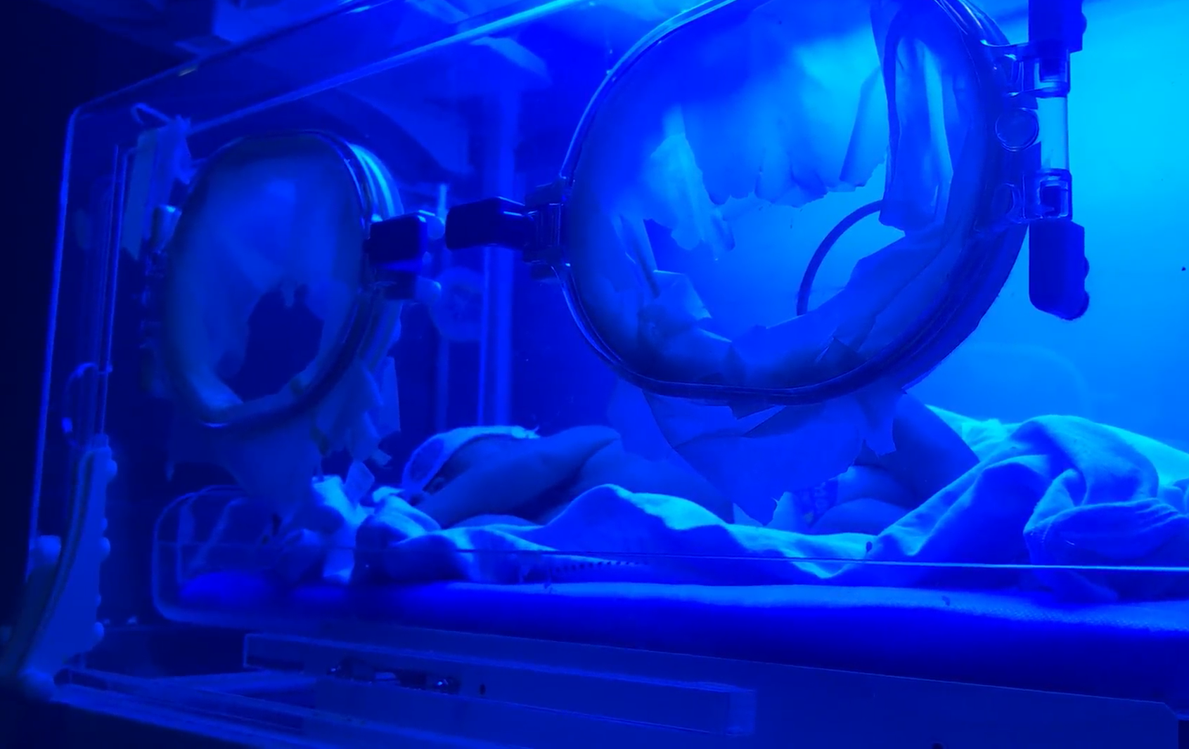 2018年6月20日晚,在益阳现代儿童妇女医院四楼7号房,“可乐”将要出售的男婴静静躺在蓝光保温箱中。孩子母亲身穿白底蓝色条纹病号服,在床上摆弄着手机,保姆在房间内忙里忙外。