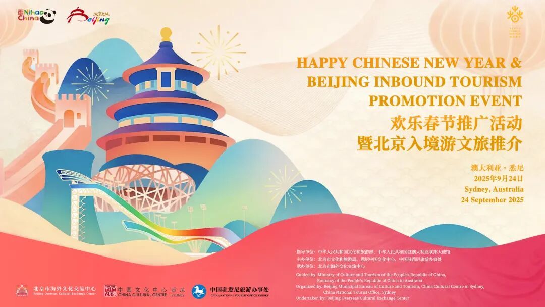 当地时间9月24日,由北京市文化和旅游局、悉尼中国文化中心、中国驻悉尼旅游办事处主办,北京市海外文化交流中心承办的“欢乐春节”推广活动暨“你好,北京”文旅推介在澳大利亚悉尼成功举行。