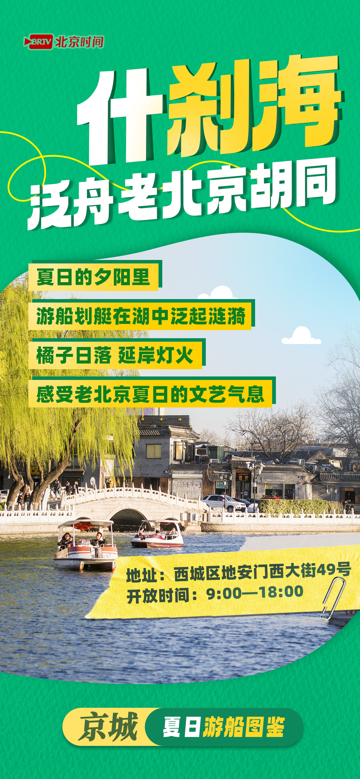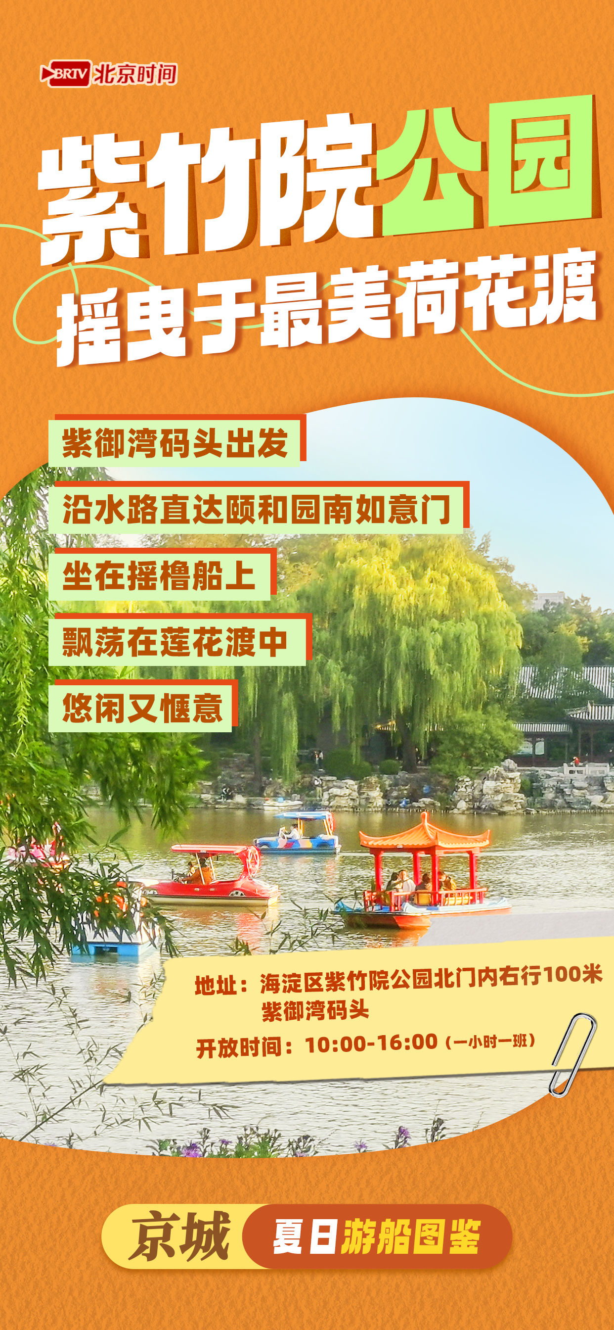 “绿树阴浓夏日长,楼台倒影入池塘”,自然的绿意随着夏日微风愈发浓郁。北京的盛夏,除了各大公园绿树成荫,就连湖上碧水都倒映着绿意盎然。想要拥抱自然、沉浸式观绿,最令人舒适的莫过于游船了!去什刹海泛舟老北京胡同,感受老北京夏日的文艺气息;去紫竹院公园飘荡在莲花渡中,悠闲又惬意;去亮马河观桥下星河璀璨,赏美轮美奂的光影秀……湖面波光粼粼,湖边绿色葱葱,乘船划开一池莲花,悠哉游哉,在水波荡漾中缓缓滑行,简直惬意极了!