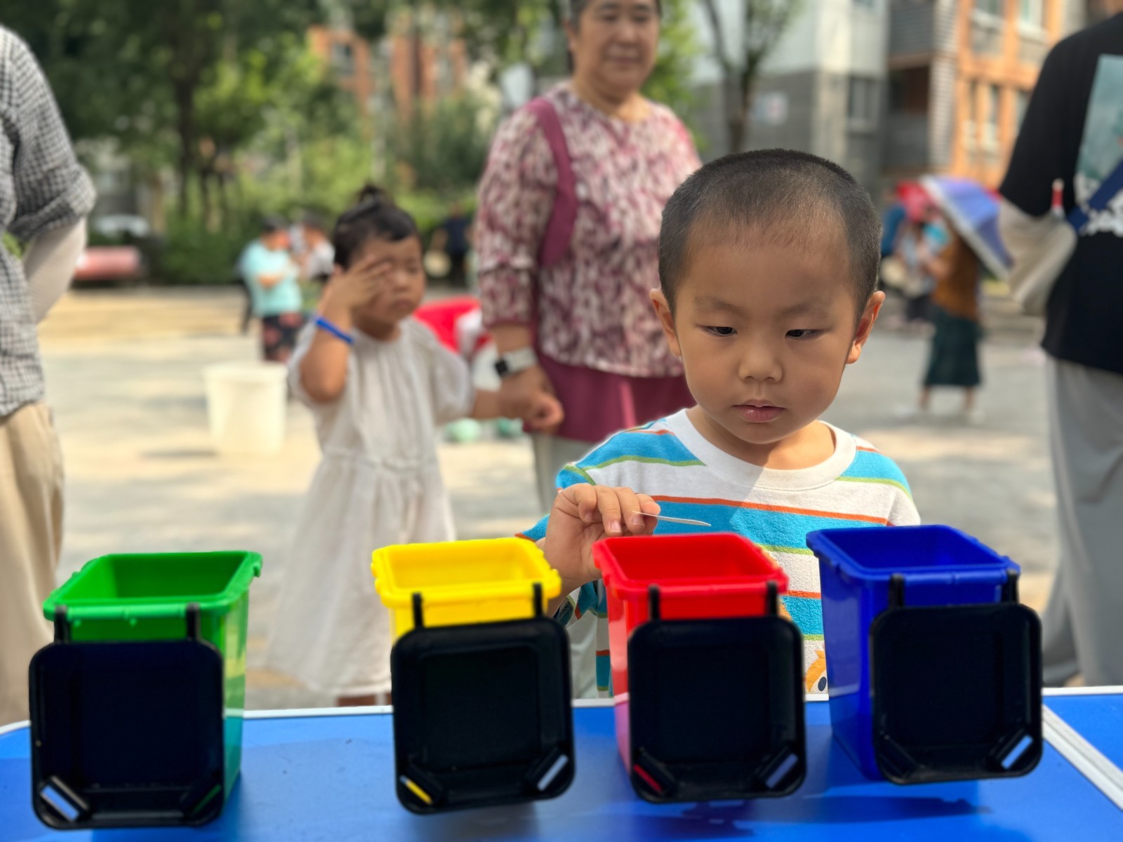 活动中,最引人注目的便是垃圾分类小游戏。居民们站在桌前,面对高度还原的模拟垃圾桶和各式各样的“垃圾”卡片,或凝神思考,或热烈讨论,争先恐后地将卡片投入正确的垃圾桶中。一位带着孩子参与游戏的家长兴奋地表示:“这样的游戏既有趣又能学到知识,我家孩子现在对垃圾分类可上心了,每次扔垃圾都要问我该放哪个桶里。”