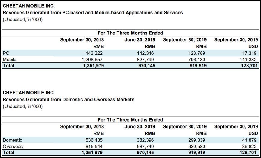 来自:猎豹移动2019年三季报