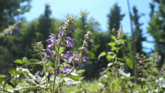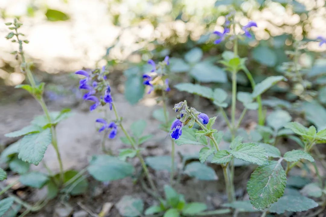 树下一簇簇紫色丹参花随风摇曳