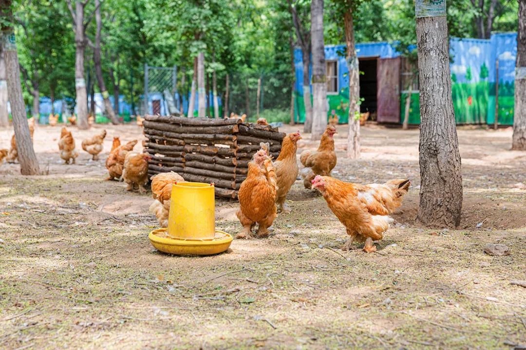 林场养殖的油鸡。