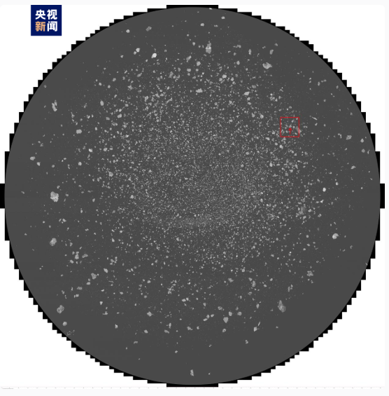 中核集团核工业北京地质研究院创新团队,通过X射线衍射等一系列高新技术手段,在十四万个月球样品颗粒中,分离出一颗方圆约10微米大小的单晶颗粒(直径不到普通人头发丝的十分之一),并成功解译其晶体结构。