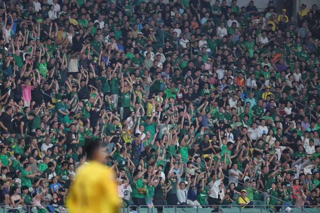 赛后,现场球迷为球队送上掌声和欢呼。很多球迷都带着笑容离开工体,一场狂胜带来的欢乐气氛感染了这座城市。