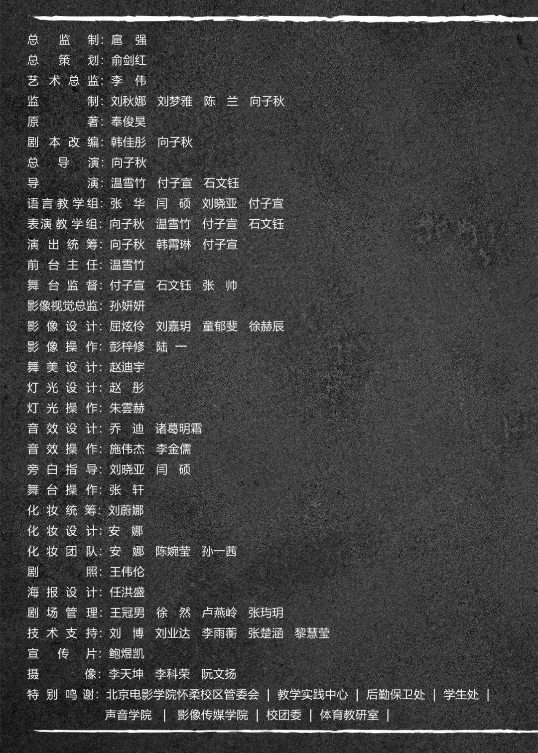 2025年6月,我们站在巨人的肩膀上,将这部经典作品以新媒体话剧的形式搬上戏剧舞台,作为2023级戏剧影视表演二班的教学毕业大戏,在北京电影学院怀柔校区千人剧场上演。