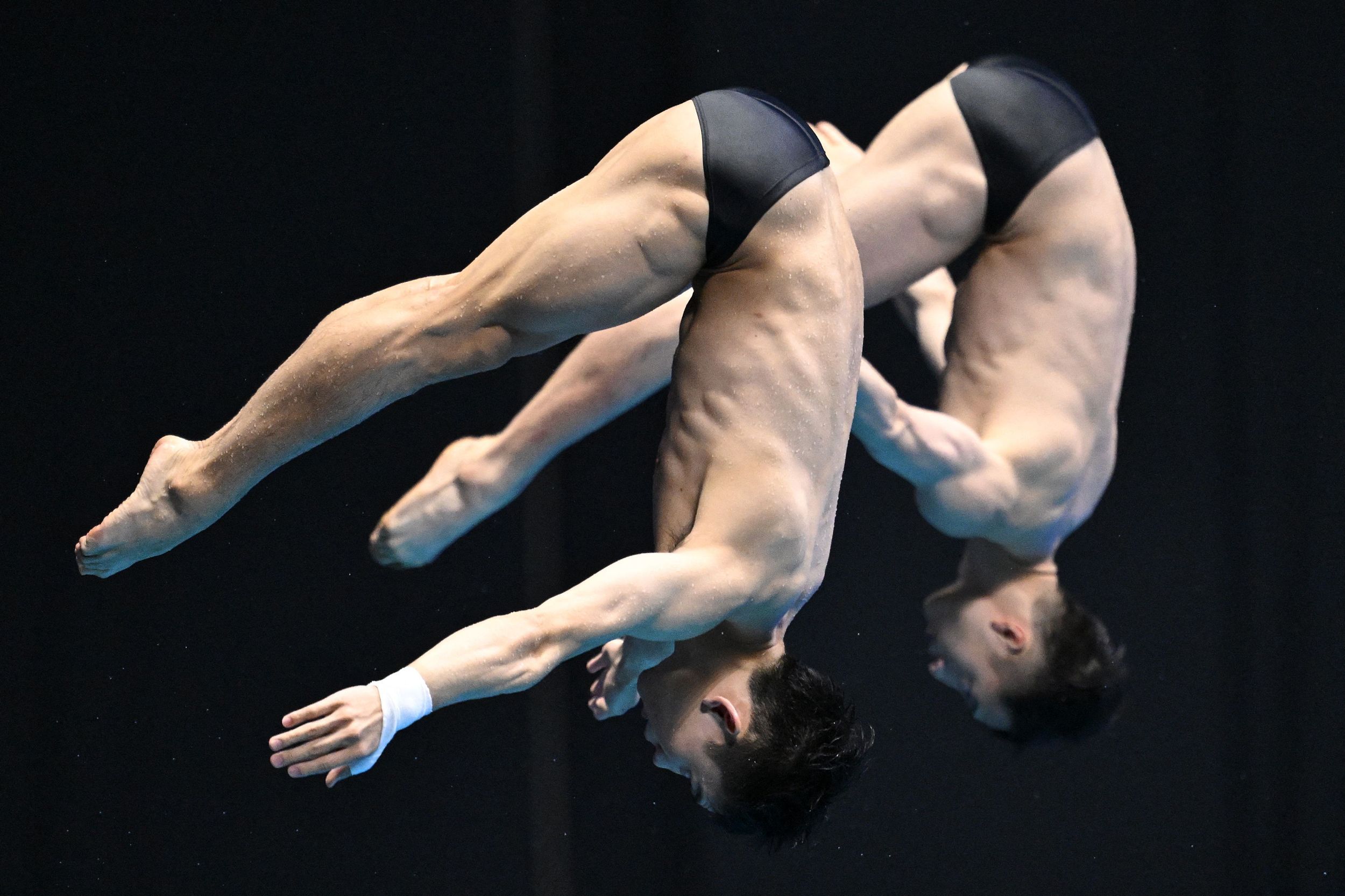 第三轮进入自选动作,中国组合选择了407C,向内翻腾三周半抱膝,3.2的难度。虽然入水的时候稍稍有一点失误,但是不影响两人拿到85.44的高分,三轮得分203.04,是唯一一对超过200分的选手。