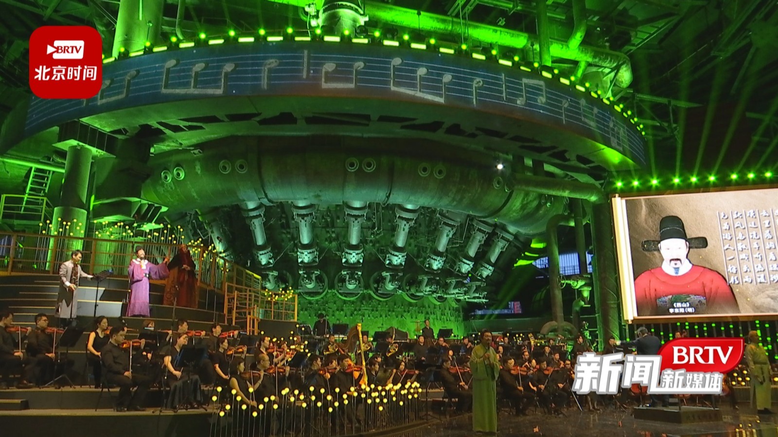 夜幕下的三高炉璀璨夺、熠熠生辉,一场跨界融合、中西合璧的“大型沉浸式交响音诗画”在此拉开序幕。开幕式演出,以“山河永定 古都新韵”为主题,用多维空间、全媒体手段架构“云时空”,展现西山永定河流域的历史与今天。