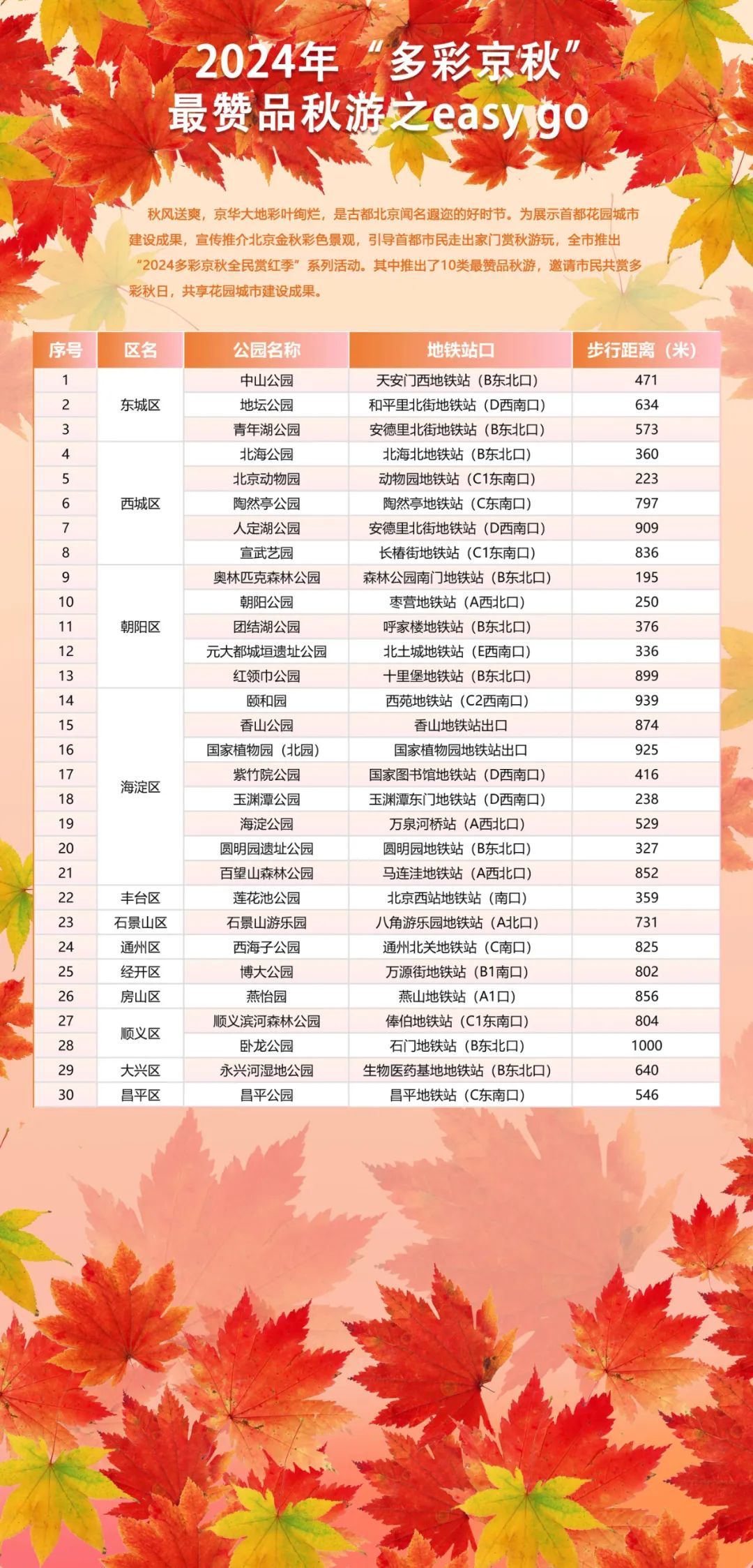 新闻链接:古都北京再迎赏红季,这30家公园地铁直达!