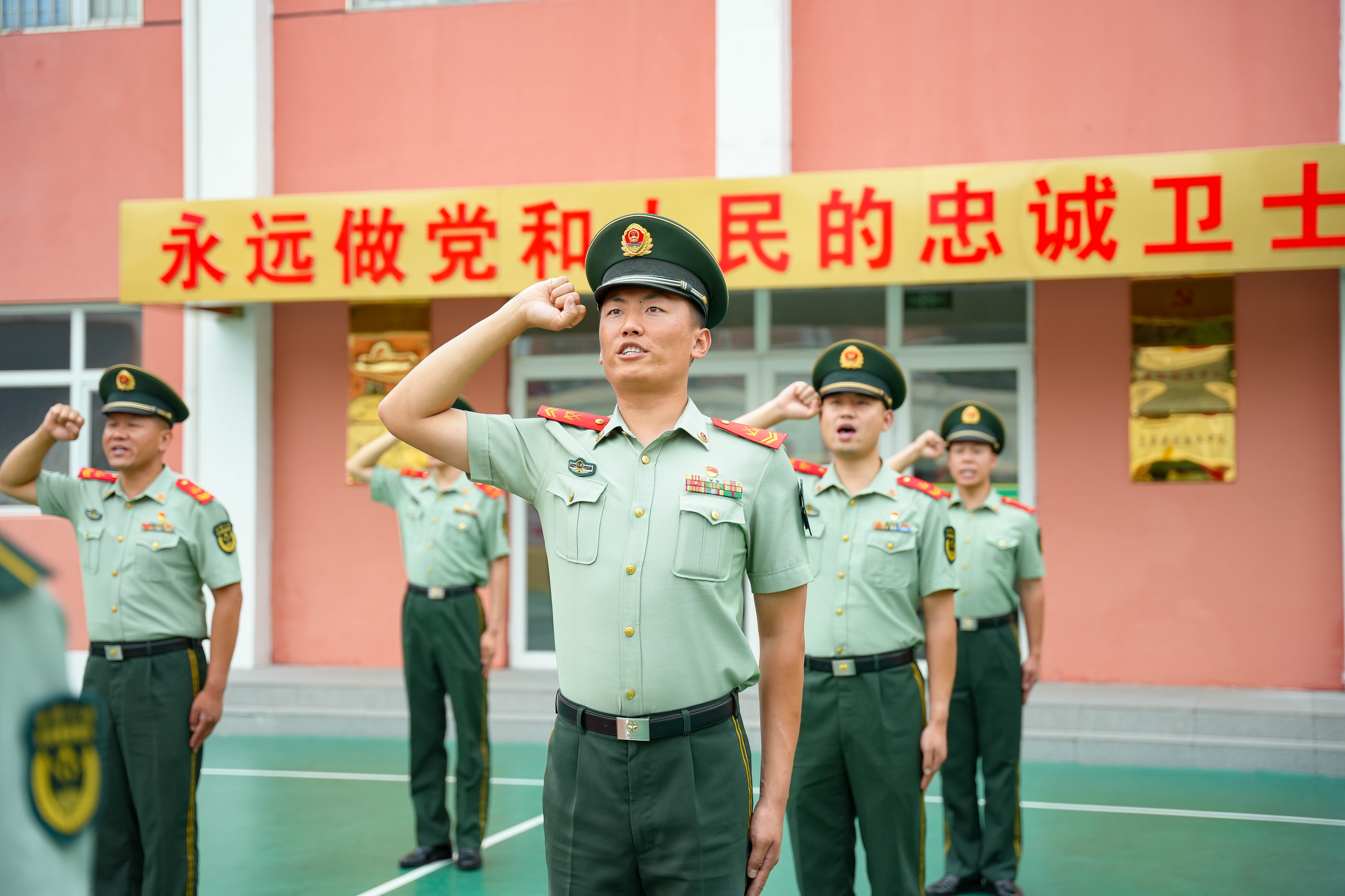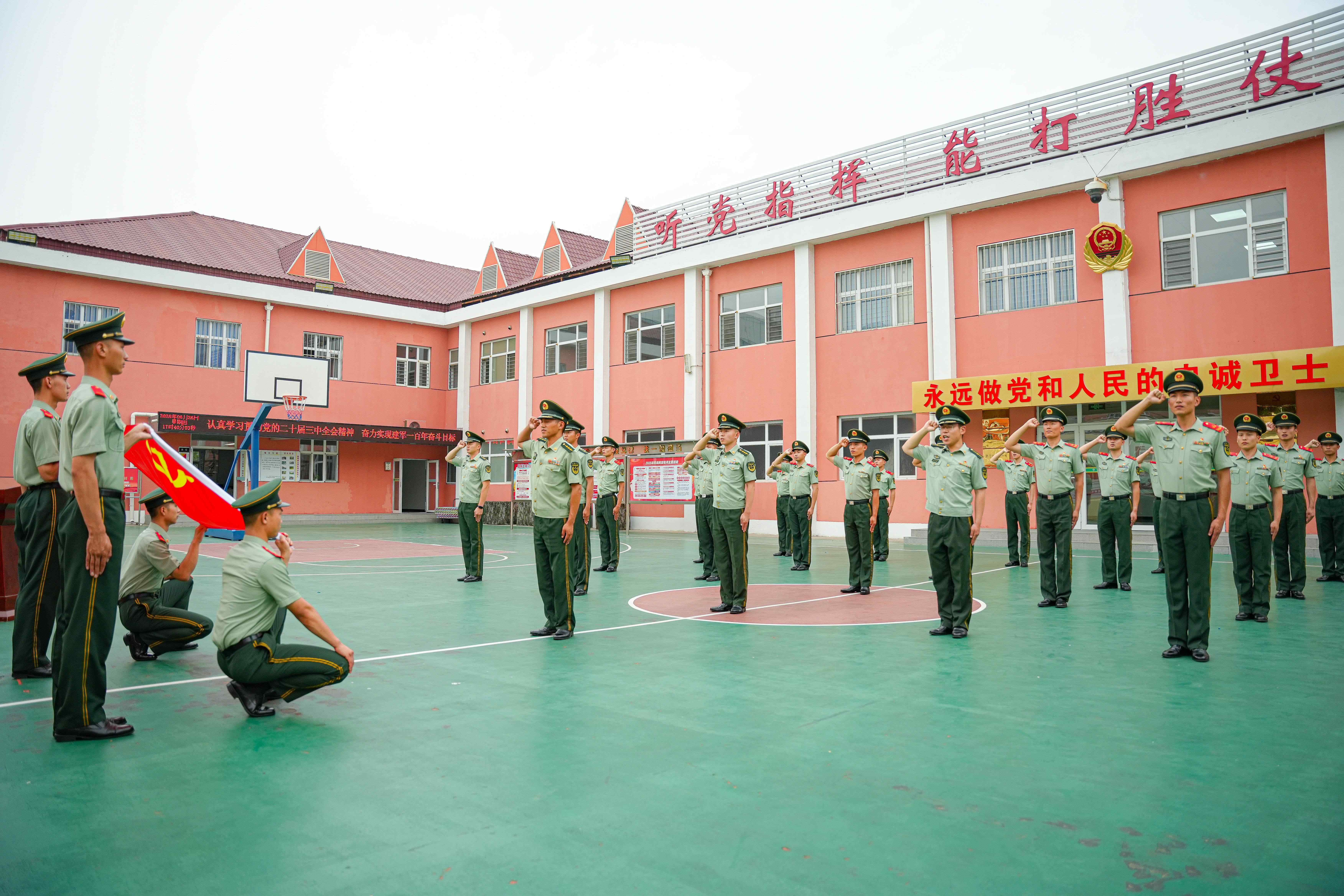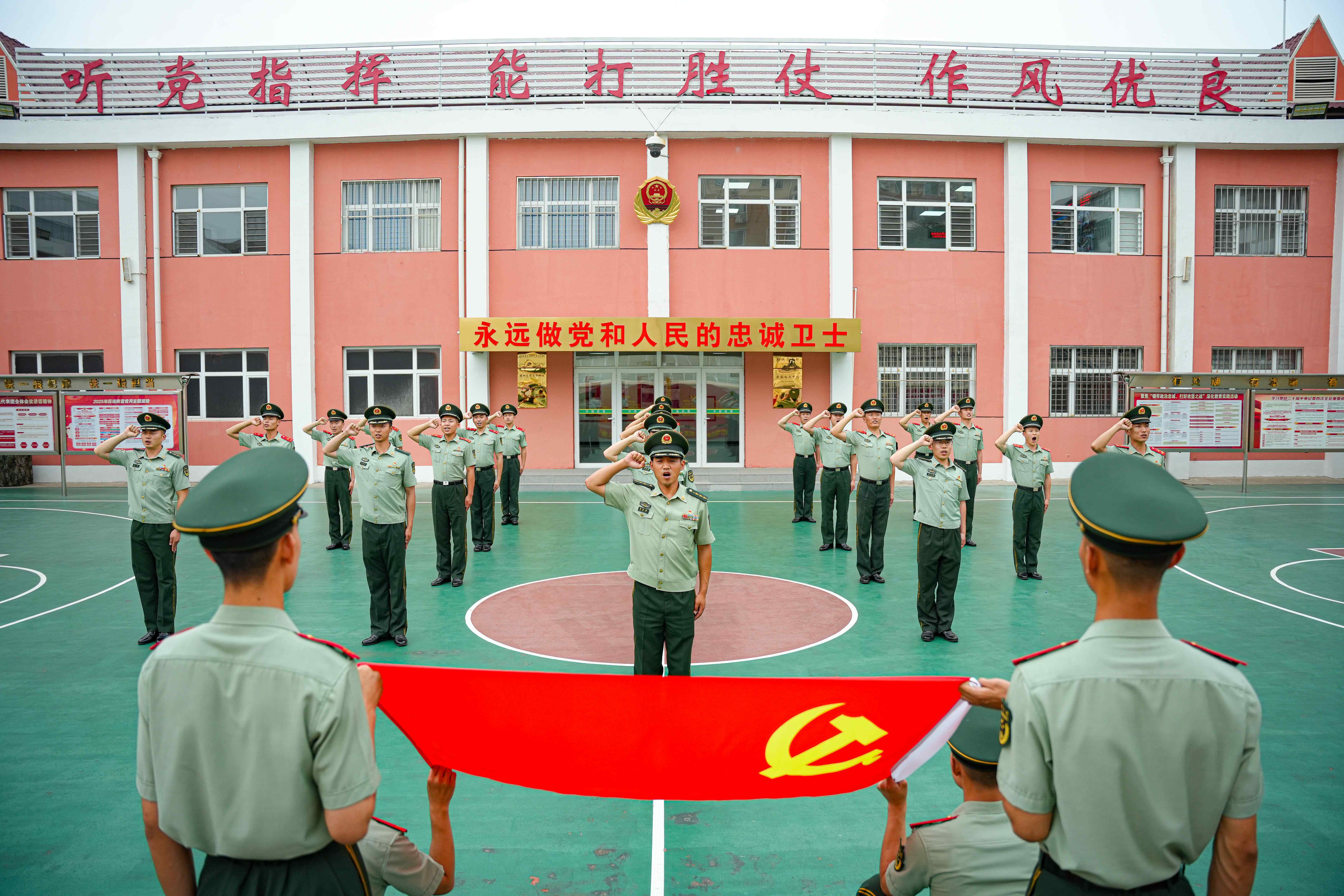 2025年7月1日,武警天津总队执勤第二支队官兵正在组织入党宣誓活动。