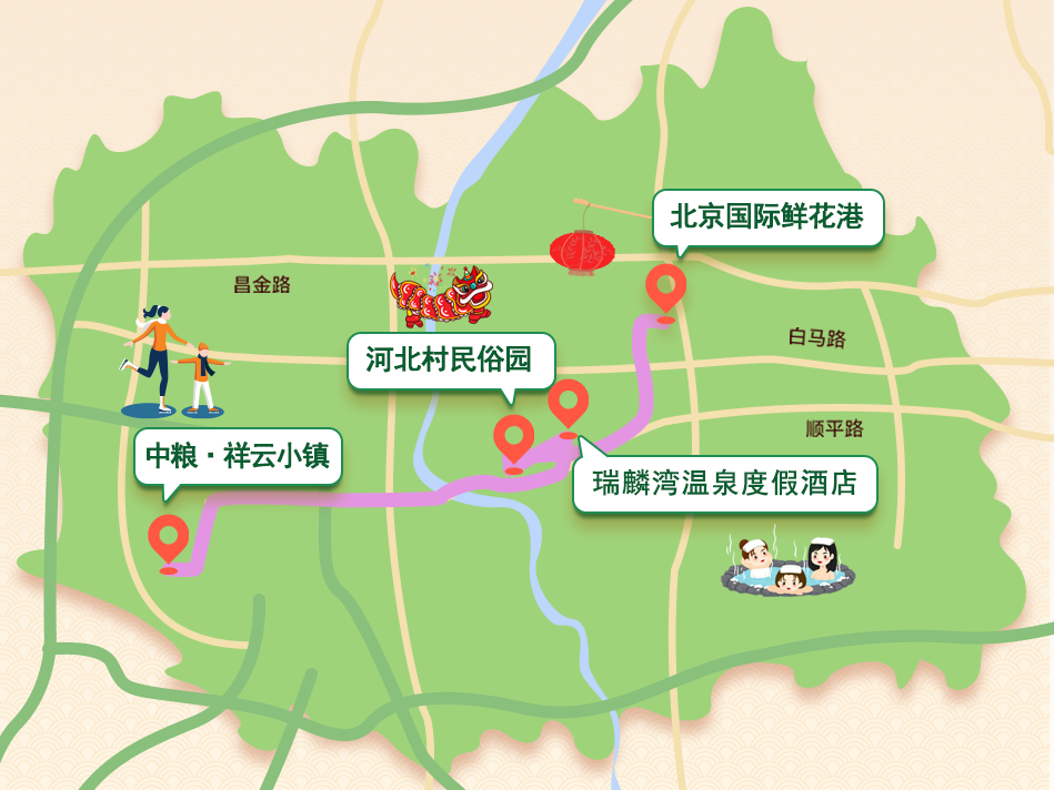 北京国际鲜花港——河北村民俗园——瑞麟湾温泉度假酒店——中粮·祥云小镇