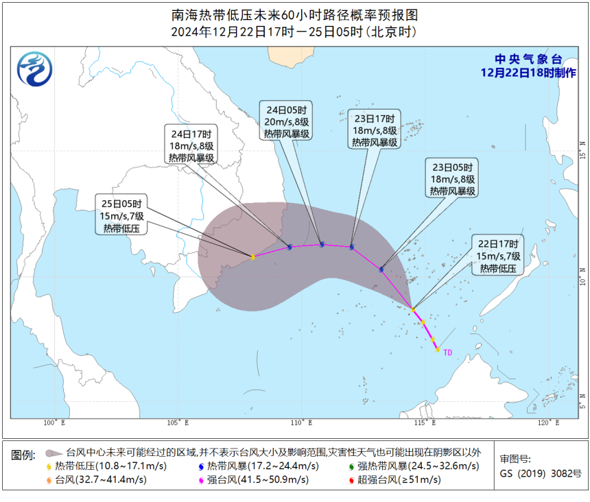 这个热带低压未来会影响我国吗?目前预报来看,低压路径趋向越南沿海,对我国的影响主要是和冷空气结合,会给我国南海制造持续大风,保持关注。
