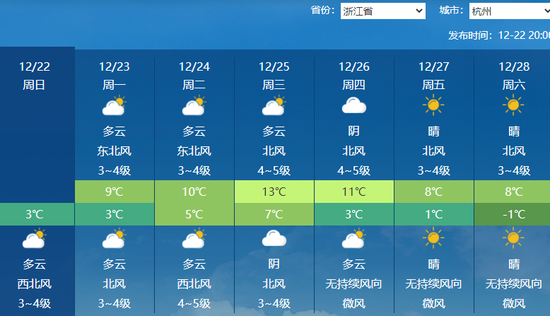 大城市中,合肥、武汉、南京、上海、杭州、长沙、南昌最高气温都将重返10℃以上,其中杭州25日最高气温有望达到13℃左右。加上未来几天雨雪稀少,大部地区晴朗居多,南方人午后出门晒晒太阳,会感觉明显温暖不少。