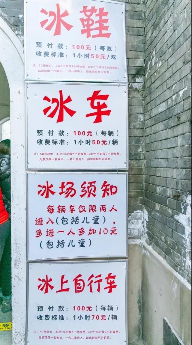 滑冰、冰车、冰上自行车种类不少,是享受冬季亲子游玩的好地方。收费标准如下: