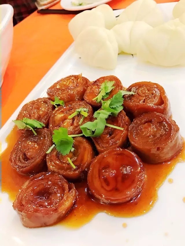 九转大肠,再给您配点荷叶饼保证您饱饱的回家~(九转大肠)烧三丝,糟溜鱼片水准比较高,值得一点,西芹百合比较清淡,麻仁香芋甜脆可口。