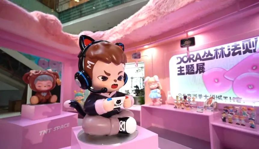 西单大悦城商圈作为第十一届北京惠民文化消费季酷玩京城版块重要合作伙伴之一,结合文创加商圈的主题活动,携手知名先锋潮玩品牌TNT SPACE带来DORA丛林法则主题展北京首展,在西单大悦城一层中庭对为公众免费开放。