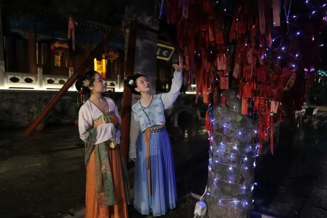 丰年人乐业,云居踏夜行。身着汉服漫步古寺,感受千年历史文脉,赴一场穿越之旅。在2023年2月5日(元宵节)至2月21日(二月二)夜场期间,身着汉服来云居寺参观的游客可免费入园。灯火初明,云居山水,古有千年刻经史,今有佳人汉服游园。古寺夜景如画,身着一袭汉服,来一次沉浸式的穿越式体验吧。