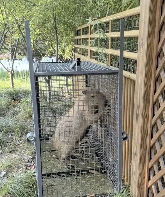 今天,江苏省扬州市茱萸湾风景区管理处发布消息:6月3日凌晨2点,“离家出走”两个多月的卡皮巴拉“豆包”走进诱捕笼,触动机关,自动门随即关上。