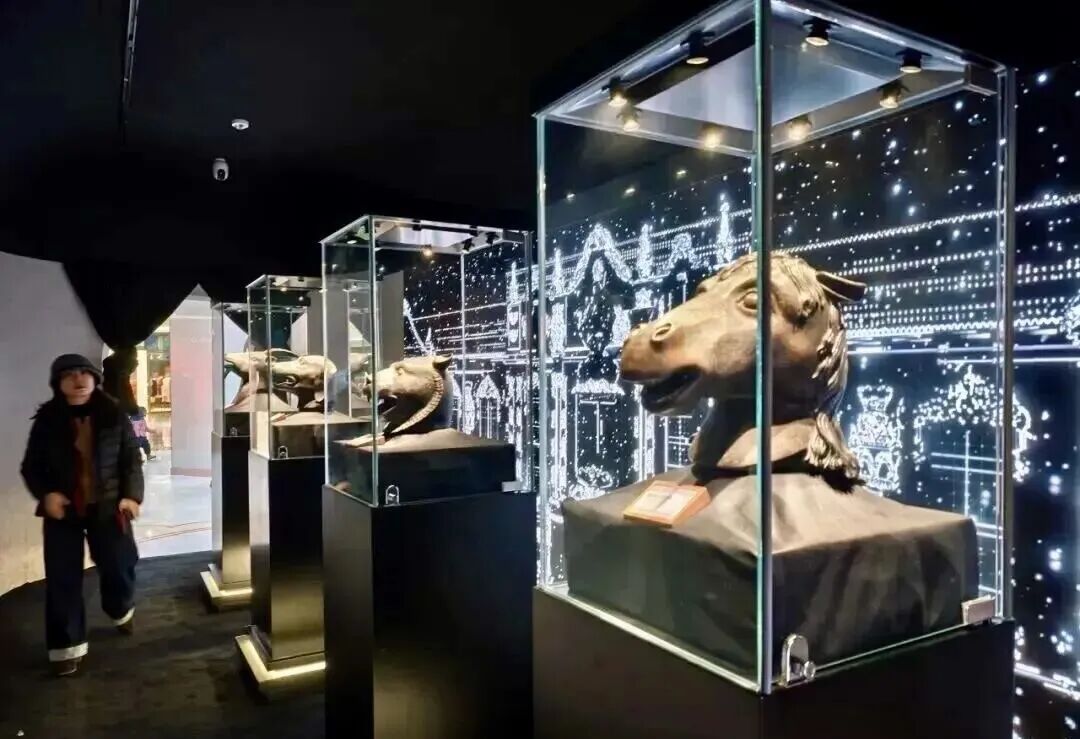 这里正在举办“兽首迎新 海晏河清——圆明园文化艺术展”,这尊巨马以圆明园马首铜像为设计灵感,又融入清代宫廷画《乾隆大阅图》中的英武气韵,沉稳大气又不失灵动。