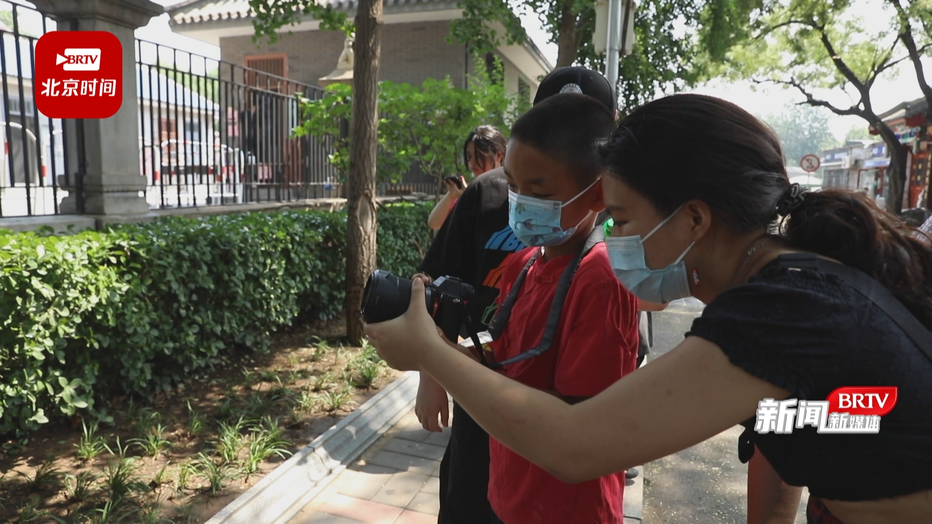 上午十点,在什刹海周边,一群小小摄影师在摄影课老师的指导下,拿起相机和手机,拍摄辅仁大学、涛贝勒府等历史文化建筑、袁满囤烈士纪念碑等红色景点,以及老北京胡同风光。
