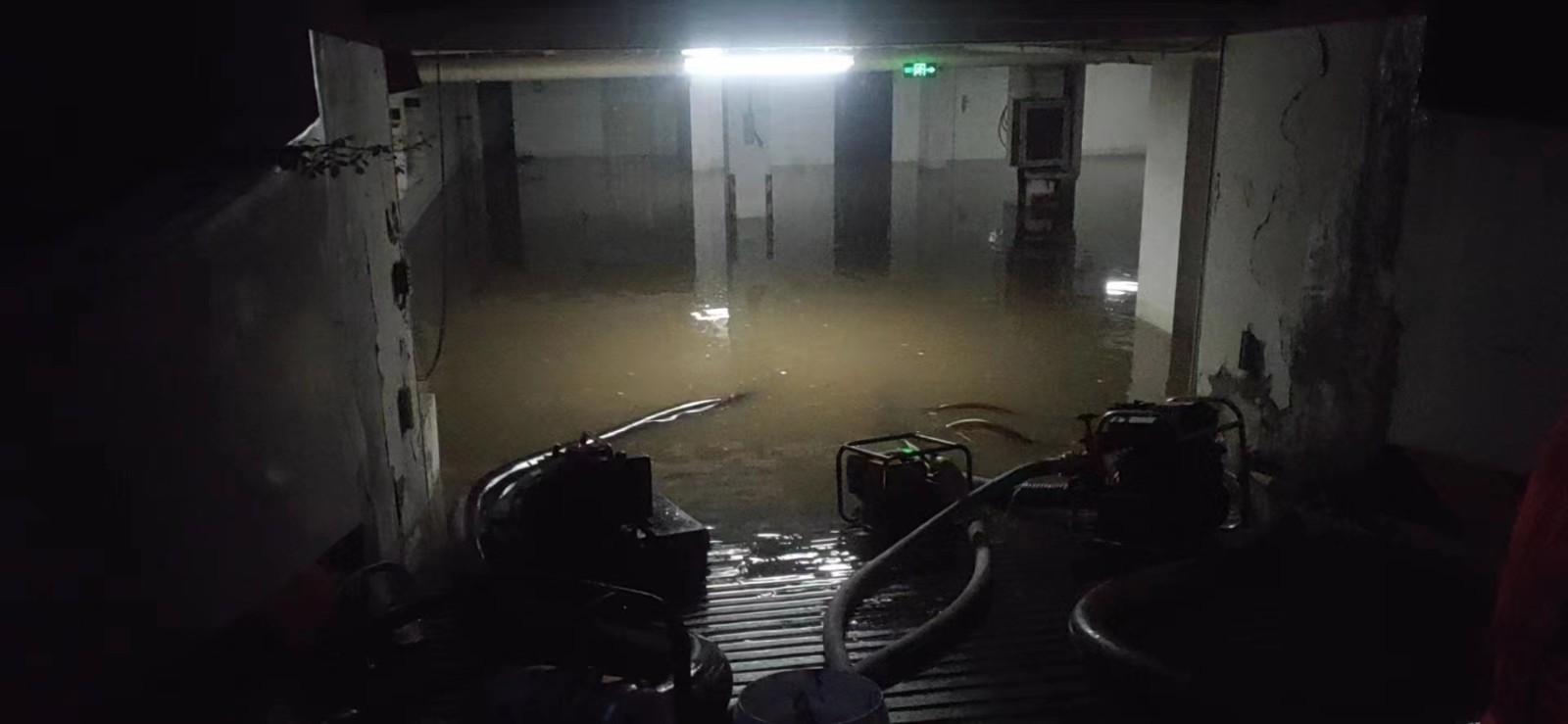 救援人员到达现场后发现,由于地下车库排水系统不通畅,导致300平米的地下车库,积水深度已达膝盖部位,严重影响居民正常生活。社区居民发现及时,将私家车开出车库,没有造成车辆被淹。根据现场情况,消防救援人员利用消防车车载吸水泵和手抬机动泵连接5条排水干线,对地下车库进行排水作业,通过四个多小时的不间断排水作业,积水被基本抽干,车库险情警报解除。8时04分消防救援人员检查无隐患后返回。