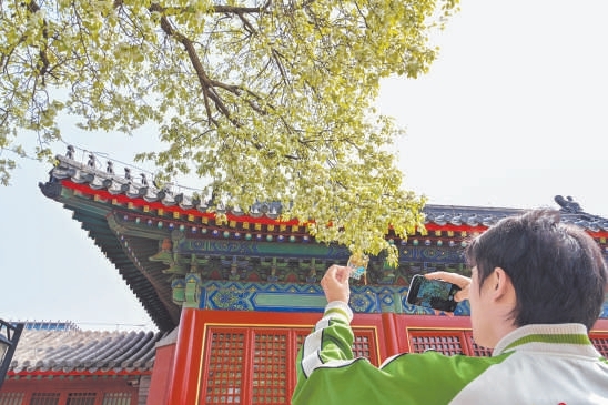 智化寺内,每逢两株古梨树盛放,都会游客如织。