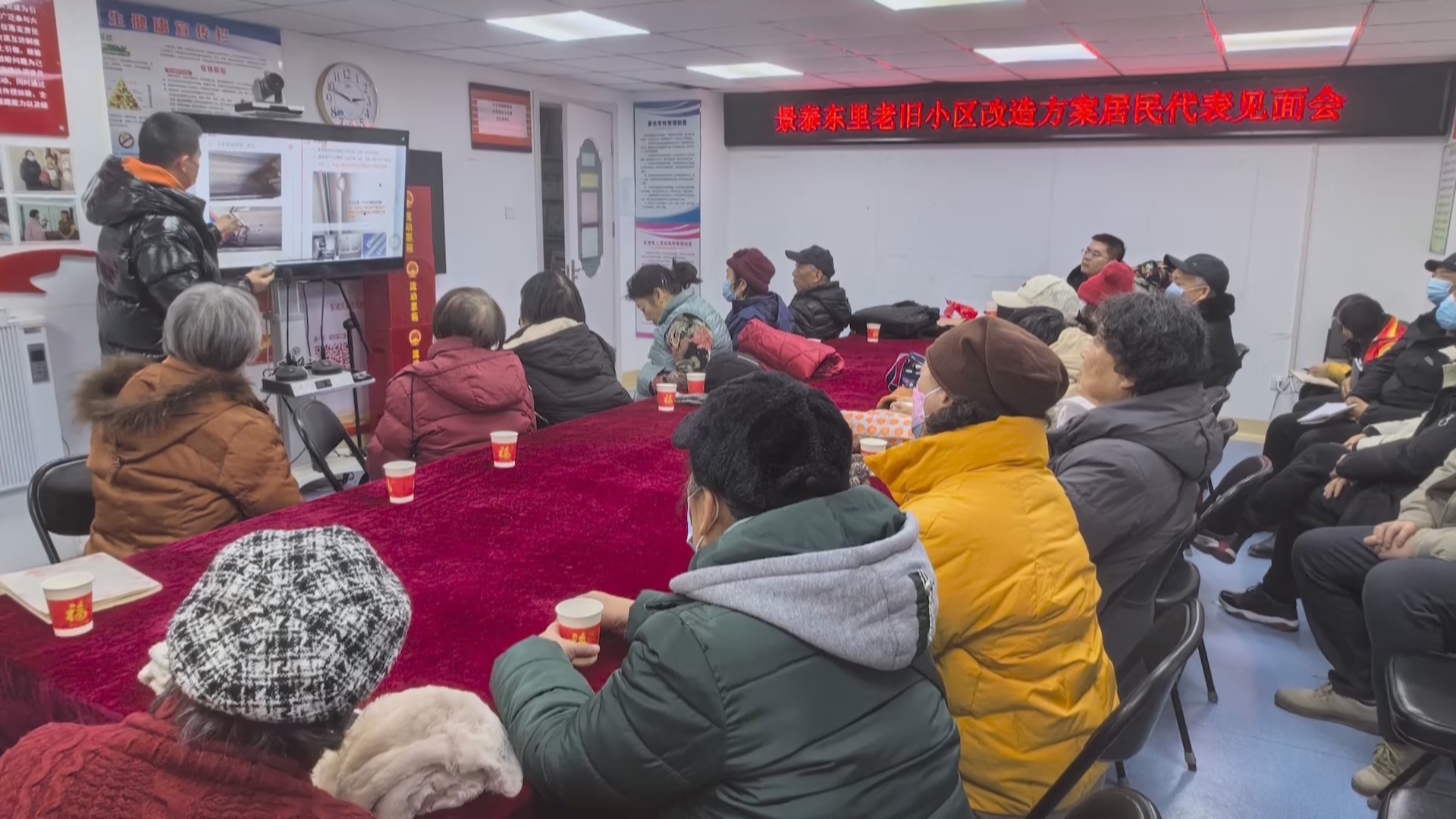 据项目负责人说,第一改造居民吃水问题,准备了桶装水,居民打电话就给往上送,在现场设置了施工项目部设置了居民接待室,随时都能联系到施工方,有问题随时解决。
