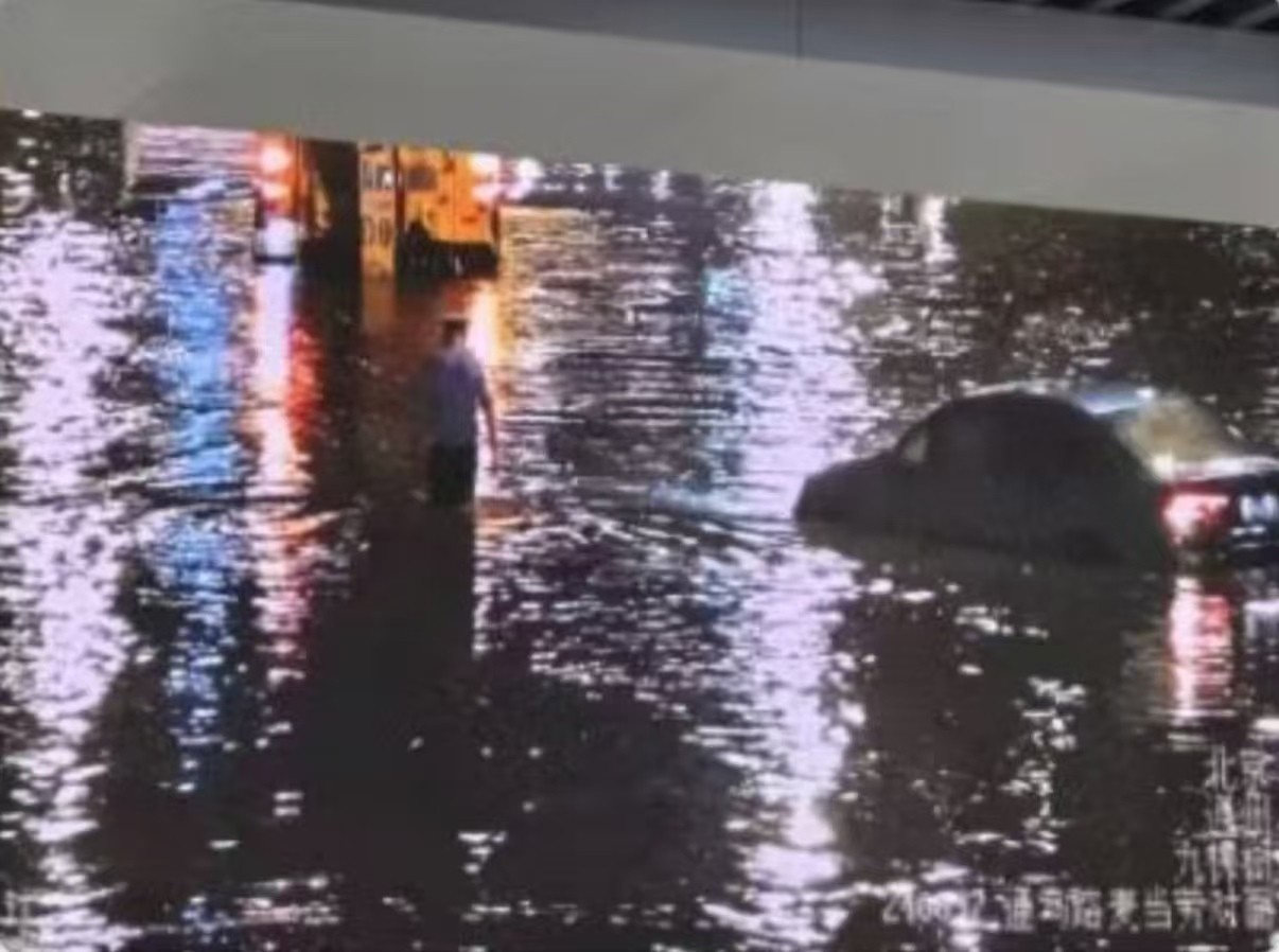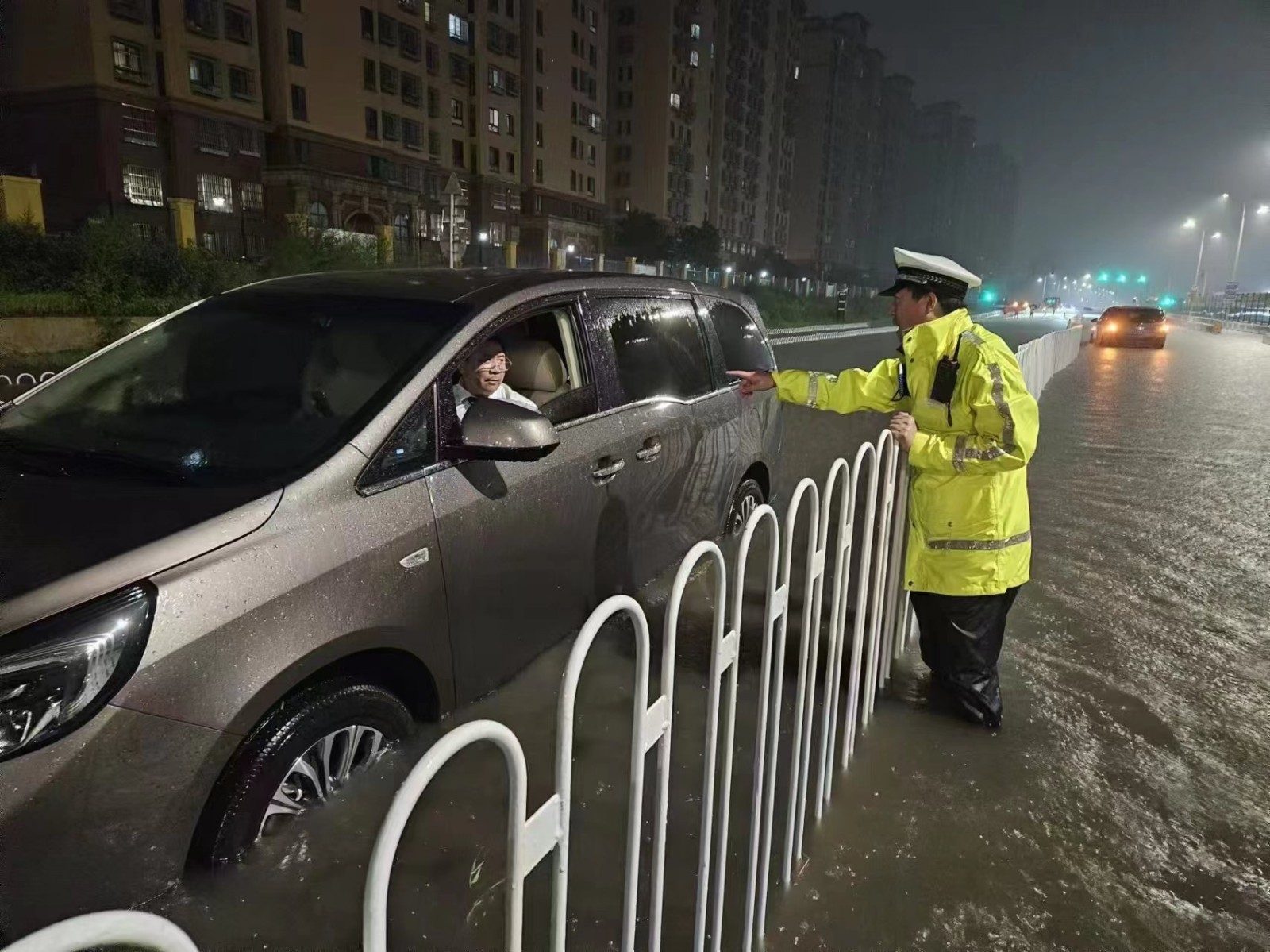 通州交警彻夜“盯”积水区 助10余辆涉水车脱困_北京时间