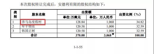 这里的养马岛度假村是中国北方工业公司全资子公司,最终控股股东为中国兵器工业集团公司,也系国有企业。资料显示,养马岛度假村已于2004年9月6日注销。