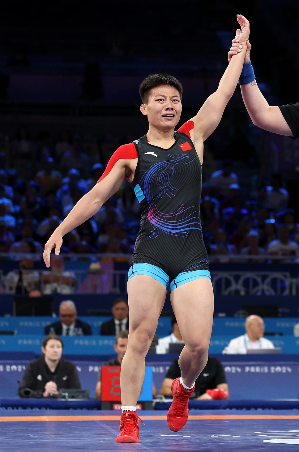 北京时间8月9日,在巴黎奥运会摔跤女子自由式53公斤级铜牌赛中,中国选手庞倩玉战胜蒙古国选手,夺得铜牌。
