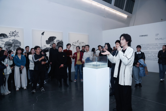 本届跨界艺术展整合了传统水墨绘画艺术、新媒体艺术装置、音乐、形体舞蹈艺术等不同艺术媒介,进行了集中呈现,旨在从万物共生同频的角度去诠释传统文化中人与自然和谐共生的理念。通过探寻传统文化对当代艺术和生活的影响,将其转化为当代艺术语境表达出来,以吸引更多青年人参与其中,一同感受我们生活在世间万物彼此影响、相互照应、生生不息的生态系统中如何完成自我感知与自然连接。