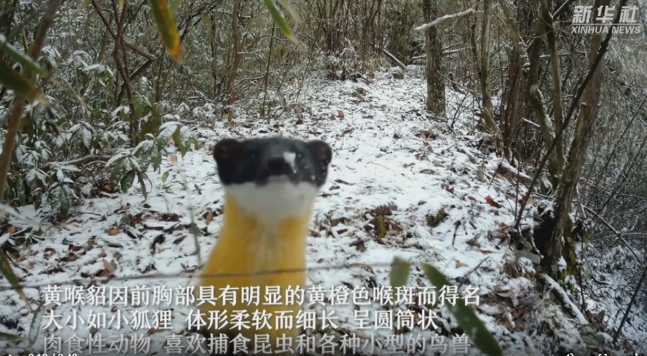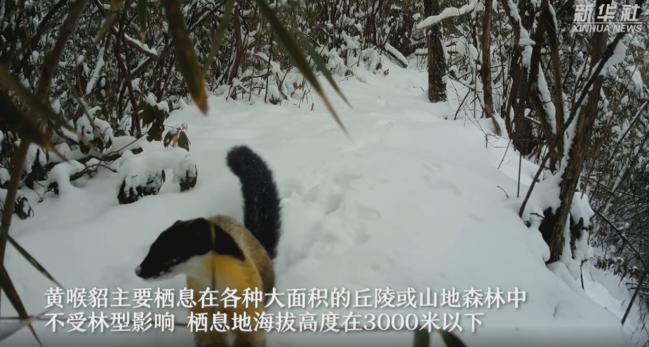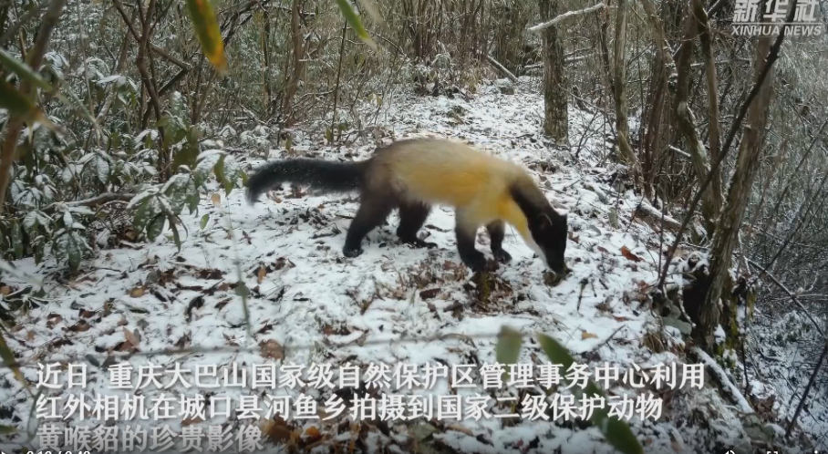近日,重庆大巴山国家级自然保护区管理事务中心利用红外相机,在城口县河鱼乡拍摄到国家二级保护动物黄喉貂的珍贵影像。黄喉貂大小如小狐狸,因其前胸部具有明显的黄橙色喉斑而得名。