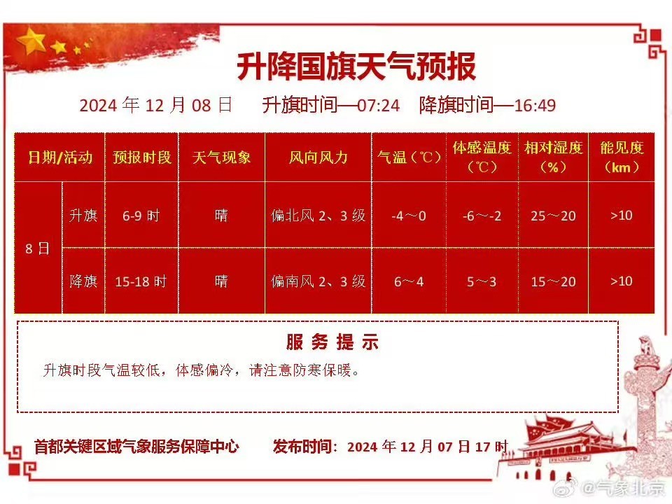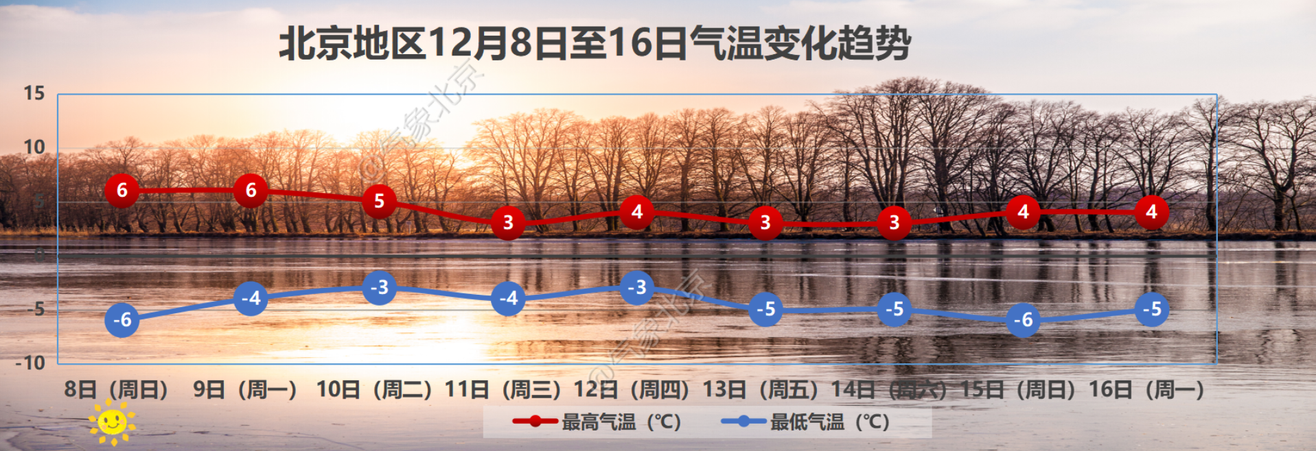 下个双休日至周一(14-16日)又会迎来以晴为主的天气。在12月8日至16日期间,气温在波动中呈现缓慢下降的趋势;南郊观象台白天最高气温3~6℃之间,夜间最低气温在-6~-3℃之间。