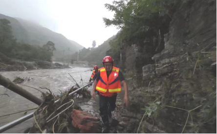 最困难的点位是发电站村最南端的村落,处在半山腰处,上山的小路盘旋在悬崖峭壁之间,下面就是势头凶猛的河水,救援非常困难。考虑到小路土松路滑,刘少如决定逆河而上,水宽了就借助植被树枝沿山坡攀爬前进,水窄了就走水流冲刷形成的石基,硬是顶着风险抵达村南,并配合直升机空投为这里的村民送去了宝贵的物资。搜救完发电站村的最后一个角落,时间来到下午2点。