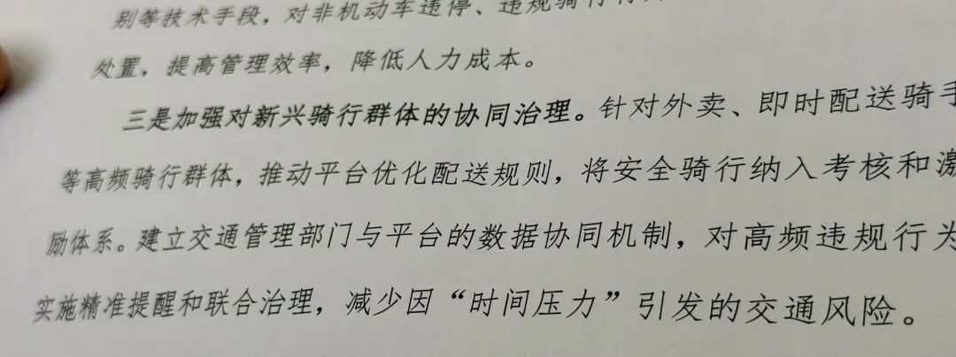 赵鑫说,新的条例已经明确规定,外卖企业专用的电动自行车要核发专用的号牌,便于识别和管理。商务和邮政是快递外卖的行业主管部门,也在推动一些规范管理的办法。交管部门也在推动解决外卖配送计时的问题,促成企业从源头完善优化配送的时间,从源头上防止配送时限不合理导致的交通违法和事故。