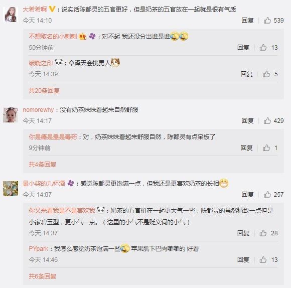 “说实话陈都灵的五官更好,但是奶茶的五官放在一起就是很有气质。”