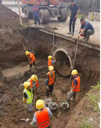 为防止桥涵二次坍塌,工作人员立即启动现场办公,对破损面积进行实地估测,当即确定重建使用的物料,确保桥涵修缮工作顺利进行。