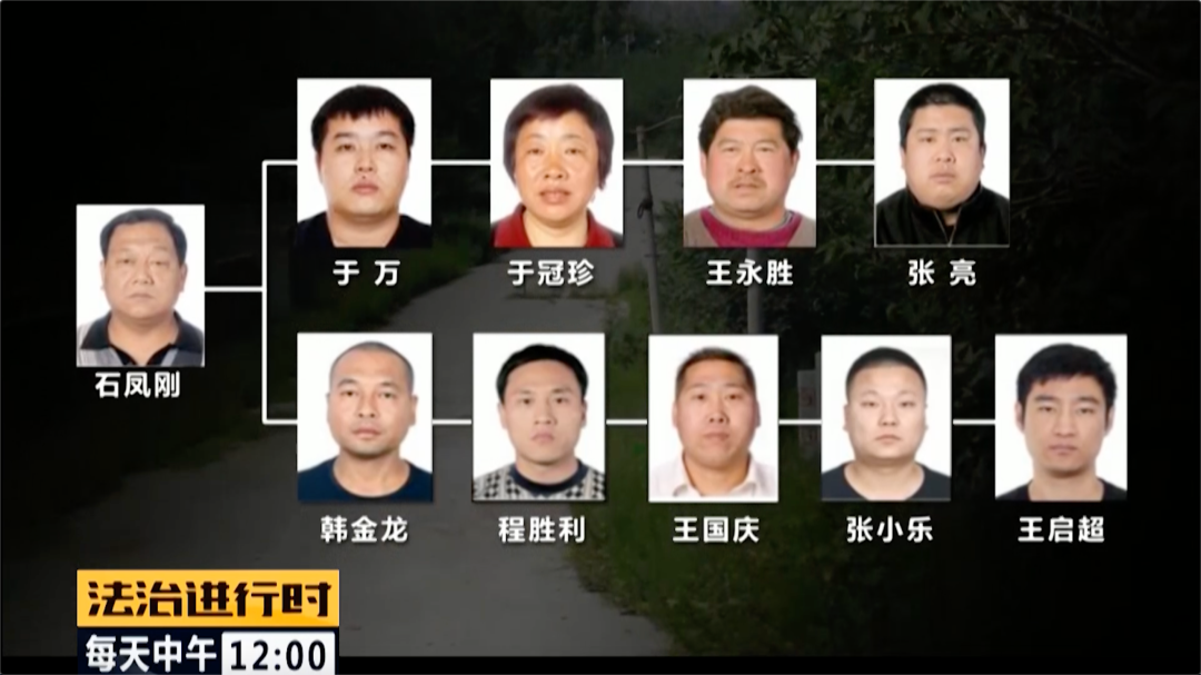 2018年8月25日,经过近一个月的补充侦查,一个以石凤刚、石阳为首的黑社会性质犯罪团伙浮出水面:在该团伙中,石凤刚、石阳组织、领导被告人于万、赵书连、于冠珍、王永胜、张亮、张磊、冯超、庞晓峰、曹哲、刘德武、罗守俊,形成骨干成员基本固定、组织结构较为稳定的犯罪组织。