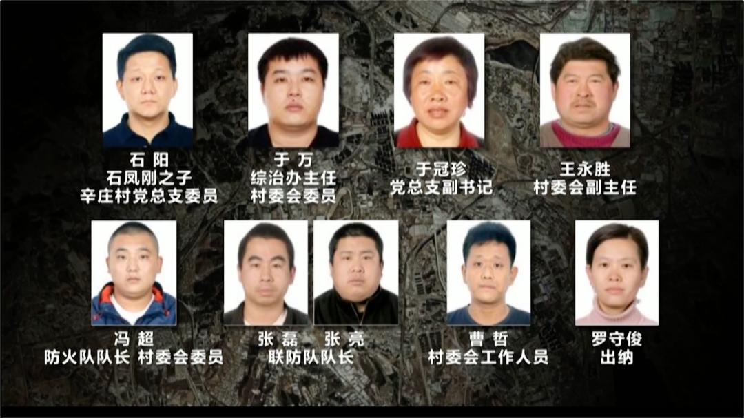 石阳,石凤刚的儿子,大学刚一毕业就成为辛庄村党总支委员;于万,综治办主任、村委会委员;于冠珍,党总支副书记;王永胜,村委会副主任;冯超,防火队队长、村委会委员;张磊、张亮,联防队队长;曹哲,村委会工作人员;罗守俊为出纳。这些人都是石凤刚陆续安插进来的。