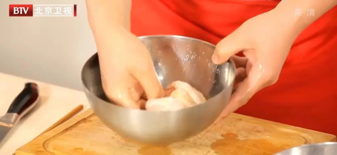 *大肠:将肠里外翻洗,用盐和淀粉反复揉搓,去除粘液和异味,并用刀去除肠壁上的脂肪。