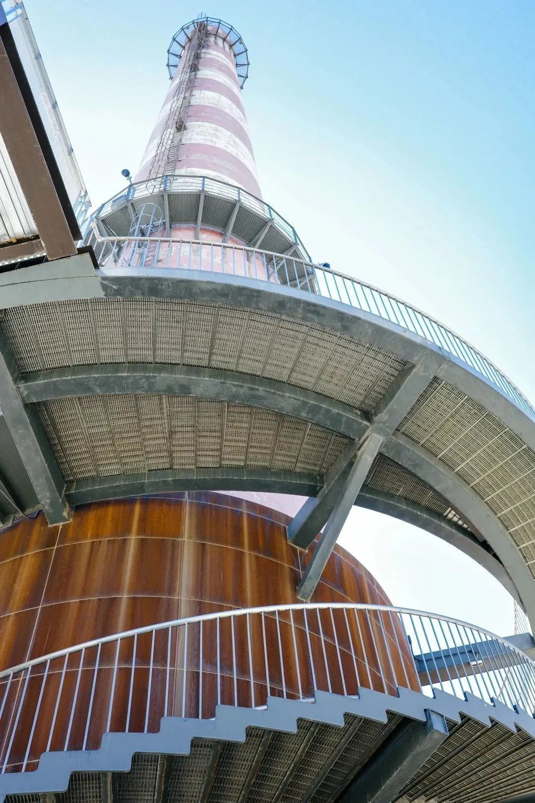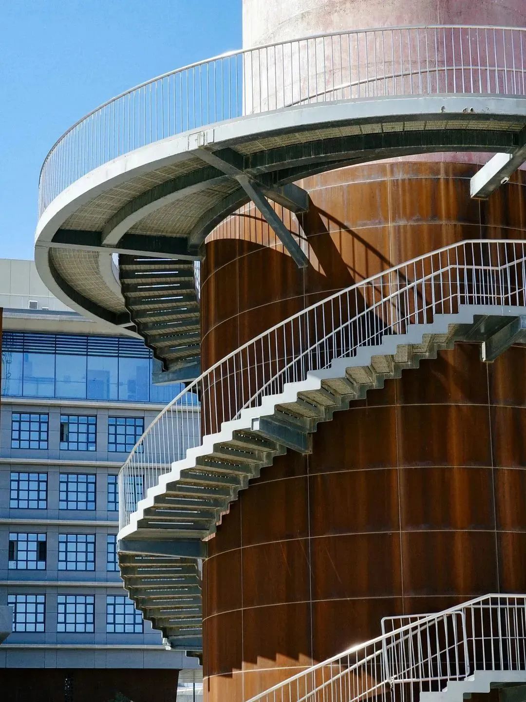 钢材阶梯如缎带般环绕而下,