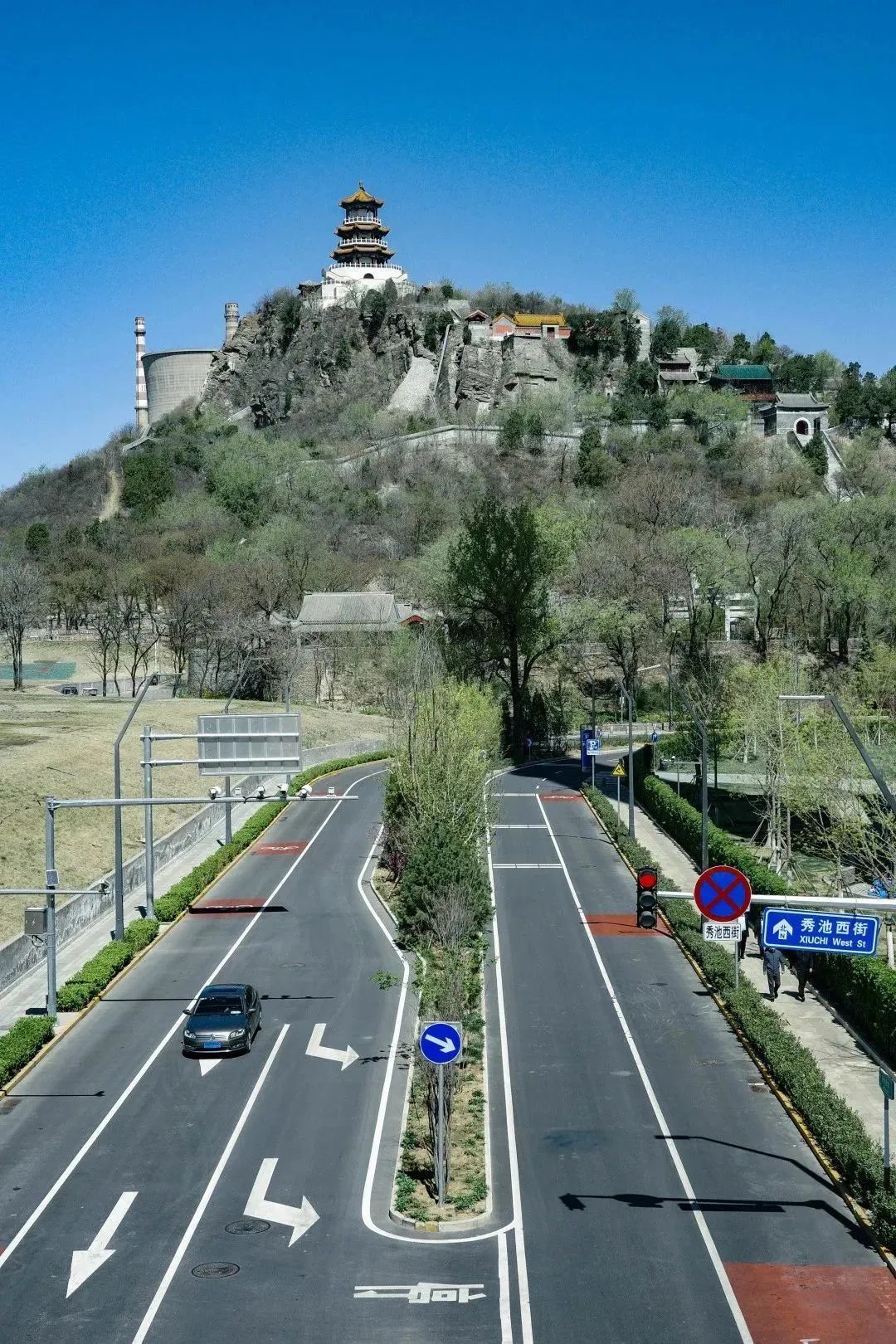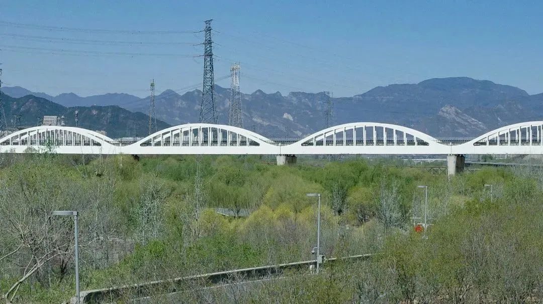 远处是双塔结构的新首钢大桥,