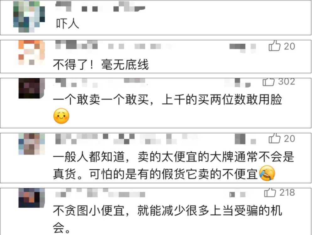 对此,有网友表示“吓人”“毫无底线”“不贪图小便宜,就能减少受骗机会”“可怕的是有些假货卖的也不便宜”。