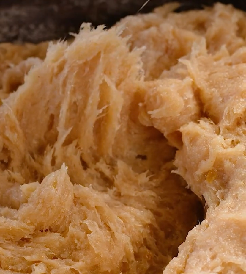 用榔头轻碾挤出果肉,捣成泥状,沿着同一个方向不断搅拌,让果肉和枣核自行分离。